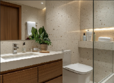 - Revestimientos porcellanato en baños y cocinas.