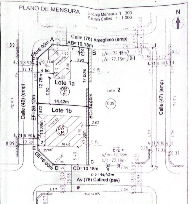 Superficie Total: $244,80 mts2 (Poligono de 13.36 mts por Perito Moreno, 6 mts de ochava hacia Av Cabred, 10.18 mts por Av Cabred , 17.60 de Av Cabred hacia Ameghino y 14.42 de Herrera hacia Perito Moreno )